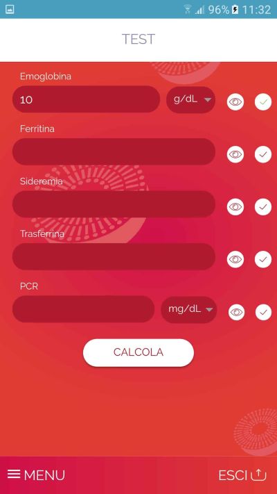 Verifica eventuali carenze di ferro attraverso l’inserimento di specifici parametri ematici (emoglobina, ferritina, sideremia, saturazione della transferrina e PCR) correlandoli ai dati anagrafici.